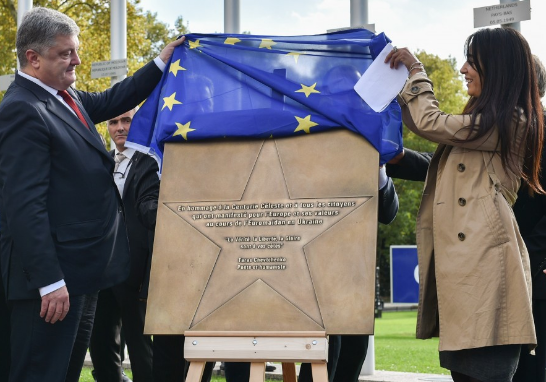 Президент отметил: «Очень важно, что в сердце Европы мы эту звезду, посвященную Героям Небесной Сотни и евромайдан, как признание насколько важна Украина и евромайдан для Европы, насколько важны наши ценности».