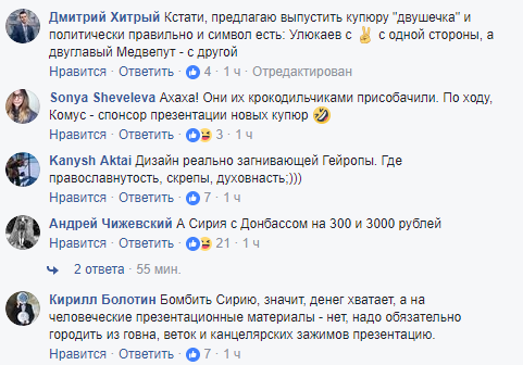 Россияне восприняли новые банкноты без особого энтузиазма, посчитав их сомнительным экономическим достижением. Соцсети наводнили саркастические реплики о том, что народу от обновленных купюр радости мало – по причине маленьких зарплат и неустойчивости рубля. Приведем некоторые комментарии пользователей Фейсбука, проживающих в России: