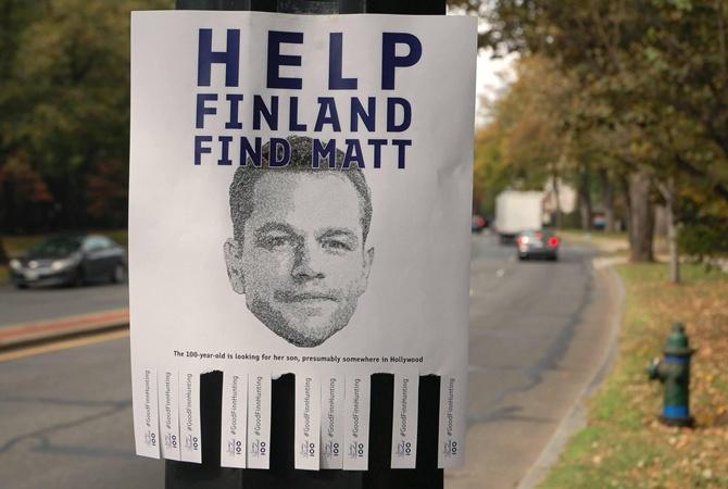 "Финляндия срочно просит вашей помощи: до нашего сотого Дня независимости осталось немногим более месяца, нам нужно найти Мэтта Деймона!".