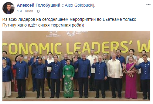 Политтехнолог Алексей Голобуцкий отметил, что Путину идет "синяя тюремная роба".