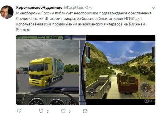 «Минобороны России использует кадры из компьютерных игр как доказательство того, что США сотрудничает с ИГИЛ", – отреагировал на пост британский журналист.