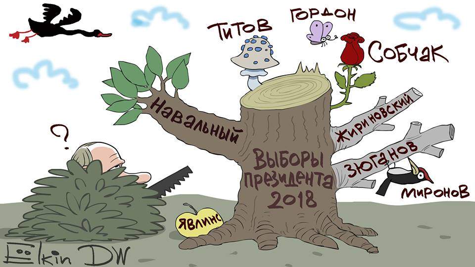 "Президентские выборы в России – в одной картинке, – подписано под карикатурой, сообщает издание DW.