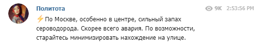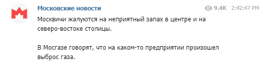 Некоторые Телеграм-каналы пишут об аварии на одном из предприятий: якобы произошел выброс газа. Москвичам советуют поменьше находиться на улице.