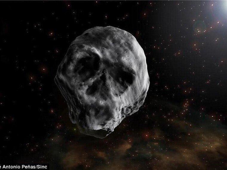 По данным ученых, размер черного небесного тела, напоминающего по форме череп, составляет от 625 до 700 метров, а период вращения — около трех часов.