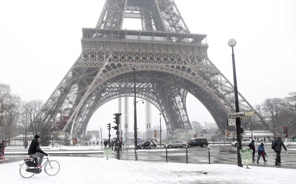 Из-за ожидаемых сильных снегопадов вход на Эйфелеву башню был закрыт для посетителей.