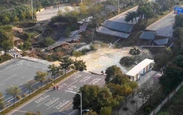 В китайском городе Фошань провалился участок 8-полосной дороги. В провал глубиной 7 метров и площадью в два баскетбольных поля упали люди.