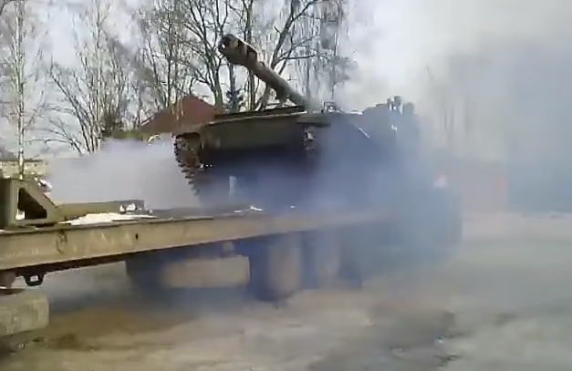 В городе Черняховске Калининградской области РФ военные пытались загрузить самоходную артустановку на транспортер, но маневр закончился плачевно.
