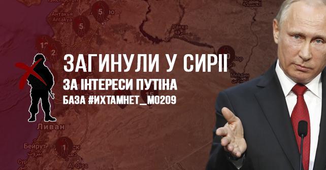 "Накануне псевдовыборов в России волонтеры международного разведывательного сообщества InformNapalm совместно с командой проекта "Ихтамнет_м0209" запустили спецпроект интерактивной базы данных погибших российских военнослужащих и наемников в Сирии, сложивших голову за нефтяные интересы Владимира Путина и его окружения.