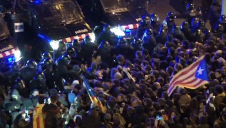 Десятки тысяч человек с флагами Каталонии вышли на улицы, передает Час Пик со ссылкой на зарубежные СМИ. Протестующие скандировали лозунги "Позор Европе!" и "Свободу политзаключенным!".