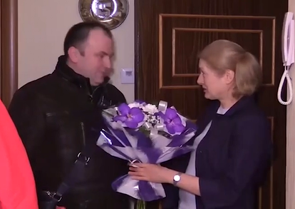 Лебедев пришел в гости к одной из пострадавших при теракте. Вручив ей букет цветов, радостный чиновник заявил, что "пришел поздравить именинницу".