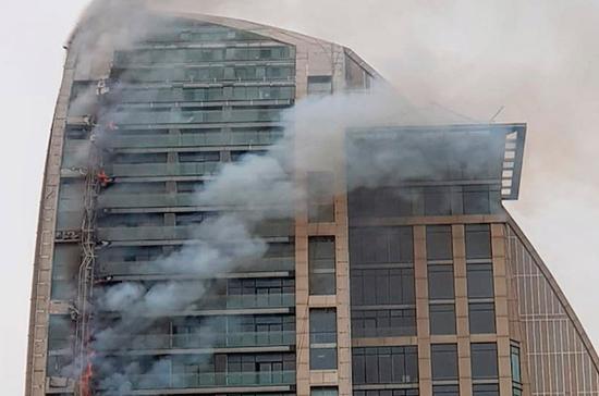 Очевидцы сообщают, что пожар бушует на верхних этажах здания, сообщает Час Пик со ссылкой на местные СМИ.