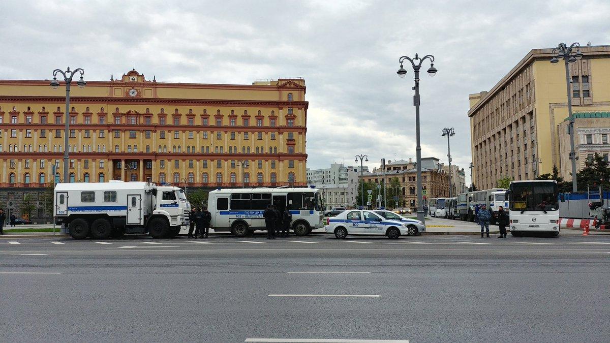 Журналист Владимир Варфоломеев опубликовал в Твиттере фото из Москвы: на улицах российской столицы выстраивается бронетехника, автозаки, автобусы с силовиками, передает Час Пик.