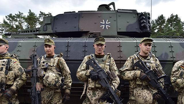 В тексте сказано, что Североатлантический Альянс быстро запасается вооружением. Танки ФРГ на сегодняшний день стоят в странах Балтии для сдерживания российской агрессии.