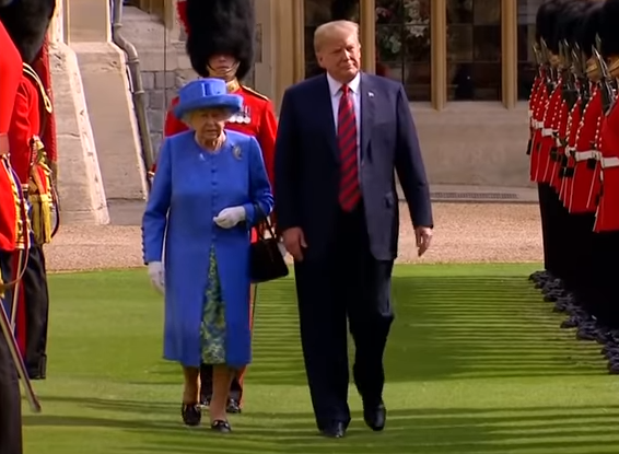 Во время церемонии обхода почетного караула Трамп выглядел несколько "потерянным". Он зачем-то начал идти впереди королевы и остановился, и Елизавете пришлось обходить его с другой стороны.