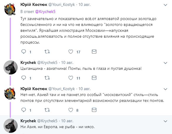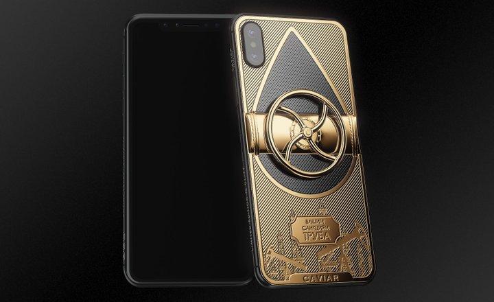 "Я уже не могу смеяться! Вот ответ на санкции. Российский бренд телефонов Caviar представил iPhone X, направленную против ограничений и санкций в сторону РФ. Корпус украшен золотым вращающимся вентилем, под ним надпись «Вашим санкциям труба». Цена 289 000 рублей, около 4530 долларов", - написал в Твиттере пользователь Krychek.