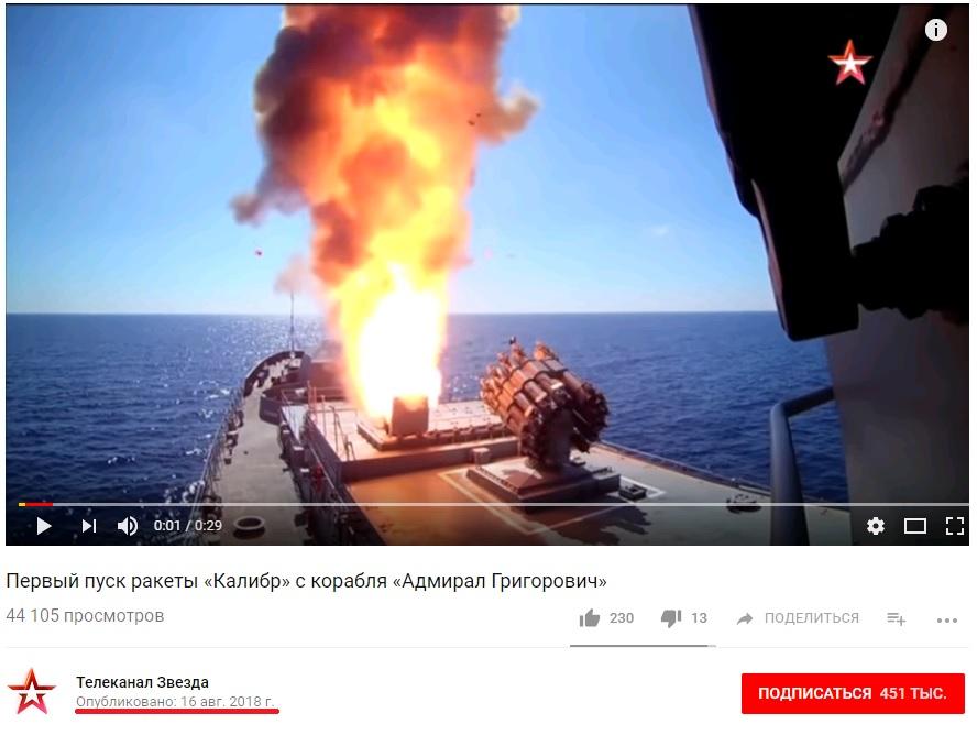Дело в том, что первоисточником сообщавшем о пуске данных крылатых ракет был российский пропагандистский канала “Звезда”, который и показал видео запуска "Калибра". Но, вот ведь незадача, это видео один в один идентично репортажу МО РФ посвящённому пускам “Калибров” с фрегата “Адмирал Эссен” в Средиземном море. Тогда российский корабль наносил удар по местам дисклокации террористов ИГИЛ в ходе наступления в районе Пальмиры.