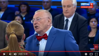 В ходе дискуссии об оккупации Крымского полуострова и отдельных регионов Донецкой, а также Луганской областей Жириновский заявил, что Украина имеет прямое отношение к ситуации с Косово, так как на основании проводимой Западом политики РФ получила полное право "защищать русскоязычное население", подразумевая под сказанным аннексию Крыма и военное вторжение на Восток Украины.