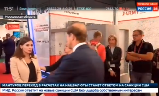 Козлова брала интервью у министра промышленности и торговли РФ Дениса Мантурова, передает Час Пик.