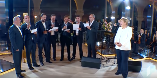 Канцлер Германии Ангела Меркель исполнила вместе с грузинским ансамблем Швидкаца свою любимую немецкую песню. Произошло это на официальном ужине в Грузии, передают местные СМИ.