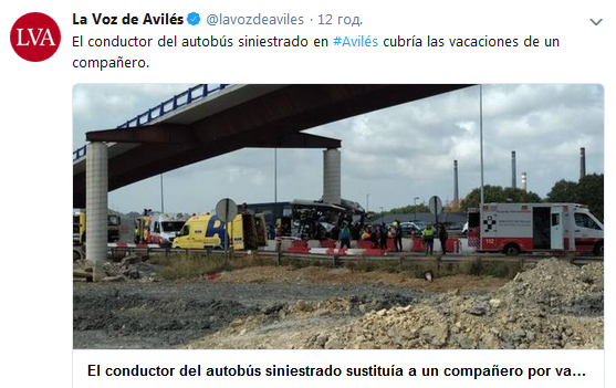 В жутком ДТП погибло по меньшей мере пять человек, еще 20 получили ранения, а водителю автобуса ампутировали ногу. Об этом сообщает La Voz de Avilés в Twitter, передает Час Пик.