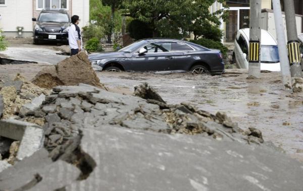 Аэрофотосъемка показала десятки оползней, обнажающих бесплодные склоны холмов недалеко от города Ацума на юге Хоккайдо, с холмами красноватой земли и упавшими деревьями. Рухнувшие остатки того, что раньше было домами или сараями, разбросаны на большой территории.