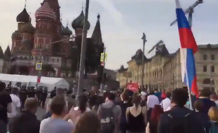 Участники протестной акции против пенсионной реформы, объявленной российскими властми, подошли к Кремлю.