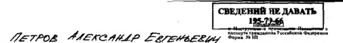 В опубликованном материале отмечается, что по Александру Петрову в базе ФМС отсутствуют какие-либо данные до 2009 года, когда он получил паспорт "взамен испорченного". При этом "в досье указан номер этого "испорченного" паспорта, которого никогда не существовало в природе", говорится в статье.