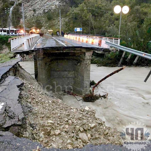 От разгула стихии сильно пострадала дорожная инфраструктура. Полностью разрушен мост в районе Макопсе на трассе между Сочи и Туапсе. Здесь разрушен 20-метровый участок федеральной трассы. Прекращено автомобильное сообщение между Туапсе и большей частью Лазаревского района Сочи.