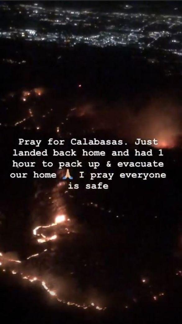 У себя в соцсети знаменитость выложила кадры горящих лесов и сообщила, что у нее был всего час на то, чтобы покинуть особняк. Срочно эвакуировалась из зоны бедствия и сестра Ким - Кортни Кардашьян.