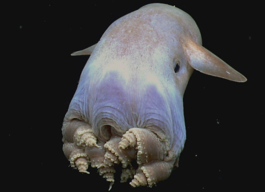 Как выяснилось, данный осьминог осьминог относится к роду гримпотевтис, проживающему на глубине 100-5000 метров. Сообщается, что ушастые моллюски предпочитает находиться ближе ко дну океана. Отростки на голове,которые больше похожи на уши, на самом деле являются плавниками.