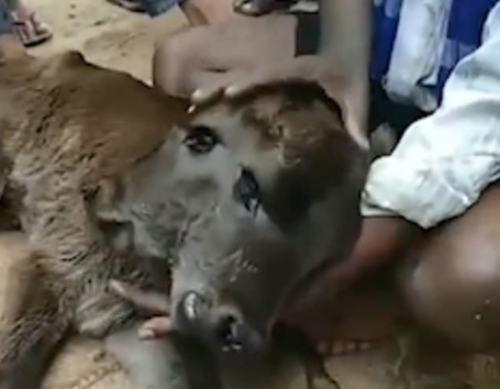 В Индии родилось животное с многочисленными аномалиями, которые местные жители прозвали "божьим чудом".
