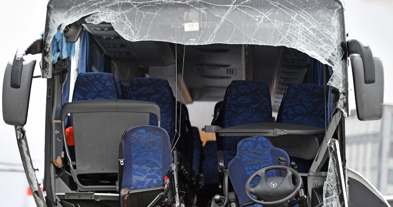 По данным, авария произошла около 04:15 утра при въезде в Цюрих. По неизвестной причине автобус съехал с дороги и врезался в стену. По предварительным данным, потеря управления произошла из-за скользкой дороги.