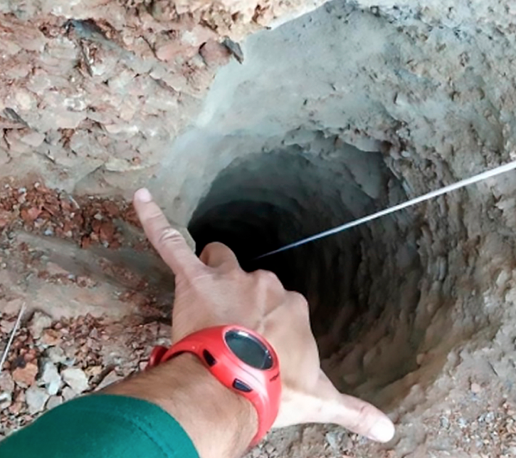Сообщается, что глубина колодца - около 110 метров, а ширина - всего 20-25 см, поэтому спасатели не могут добраться до ребенка. На глубину 70 метров удалось опустить камеру: там обнаружили пакет со сладостями, который нес мальчик, когда гулял.
