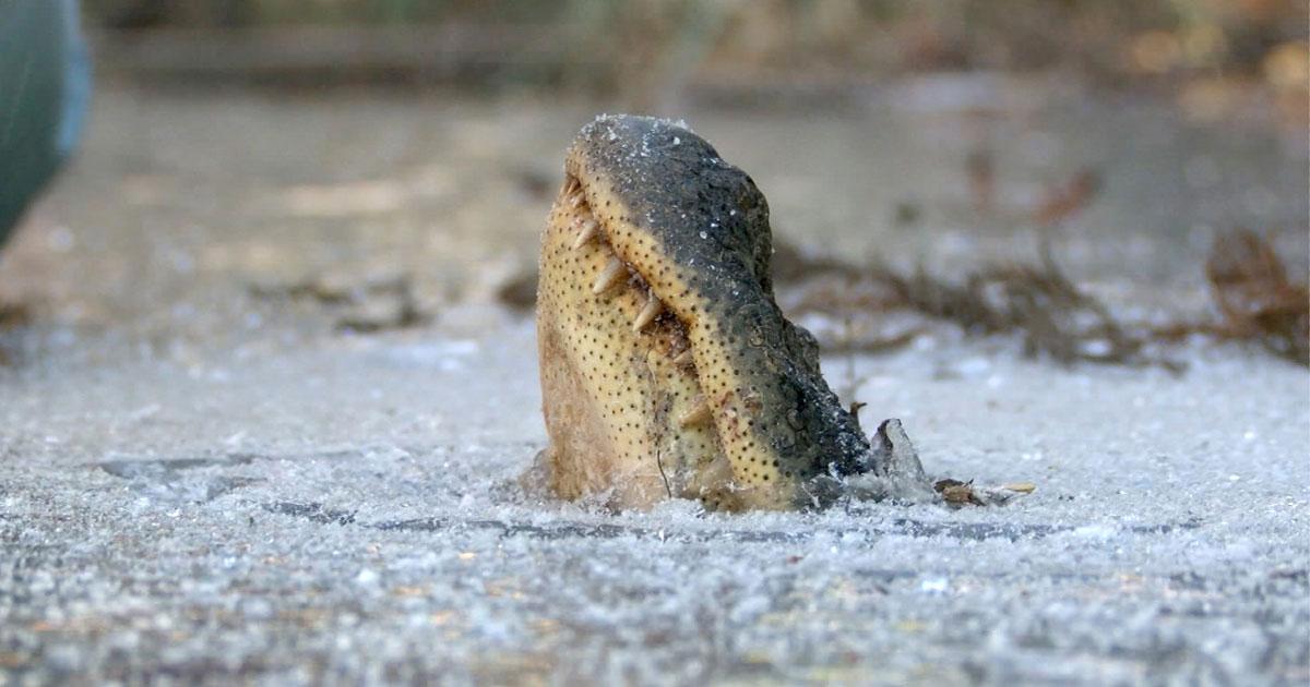 В прошлом году, когда на восточном побережье США установилась морозная погода и температура воздуха падала до минус 30 градусов, аллигаторы из данного парка впервые погрузились в подледную спячку. Сообщается, что никто никогда не сталкивался с такой техникой выживания.