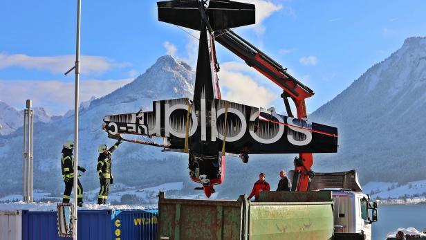 Сотрудники чрезвычайных служб достали из воды самолет, который на тот момент почти полностью погрузился в озеро.