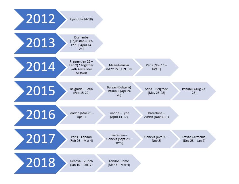 В 2012-2018 гг. "Федотов" активно ездил по миру: он посетил западную и восточную Европу, Центральную Азию и Ближний Восток.