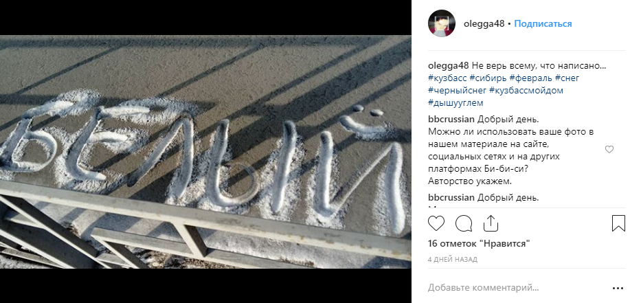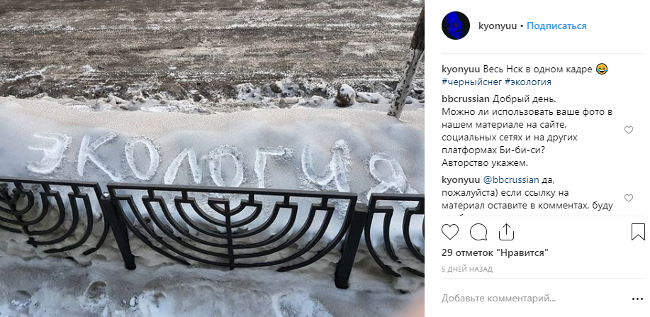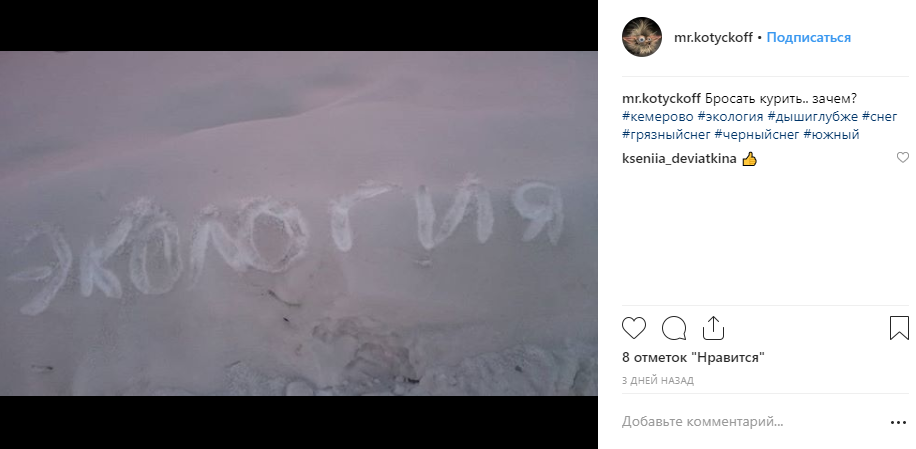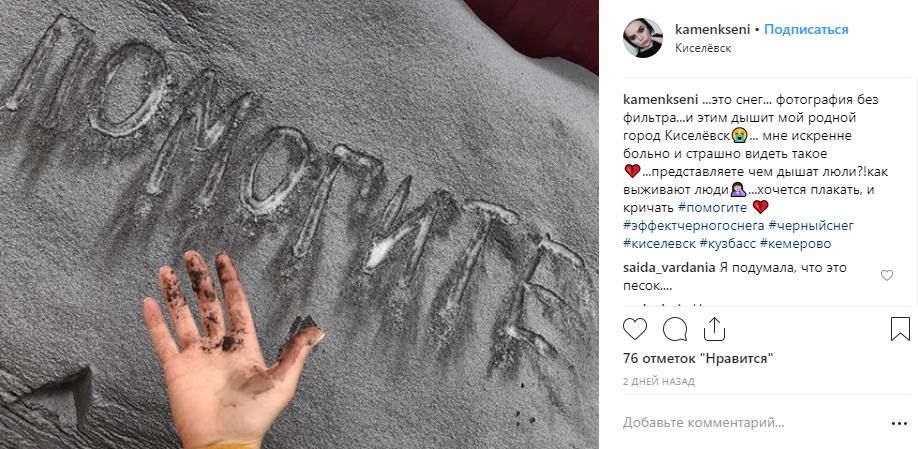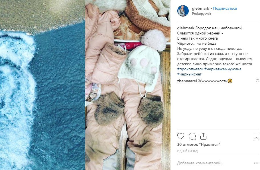 Российский регион Кузбасс завалило черным снегом. Местные жители жалуются на маслянистую грязь, которая не отстирывается от одежды.