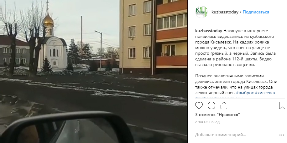 Кадры улиц, засыпанных черным снегом, уже несколько дней выкладывают в соцсетях жители Кемеровской области, передает Час Пик.
