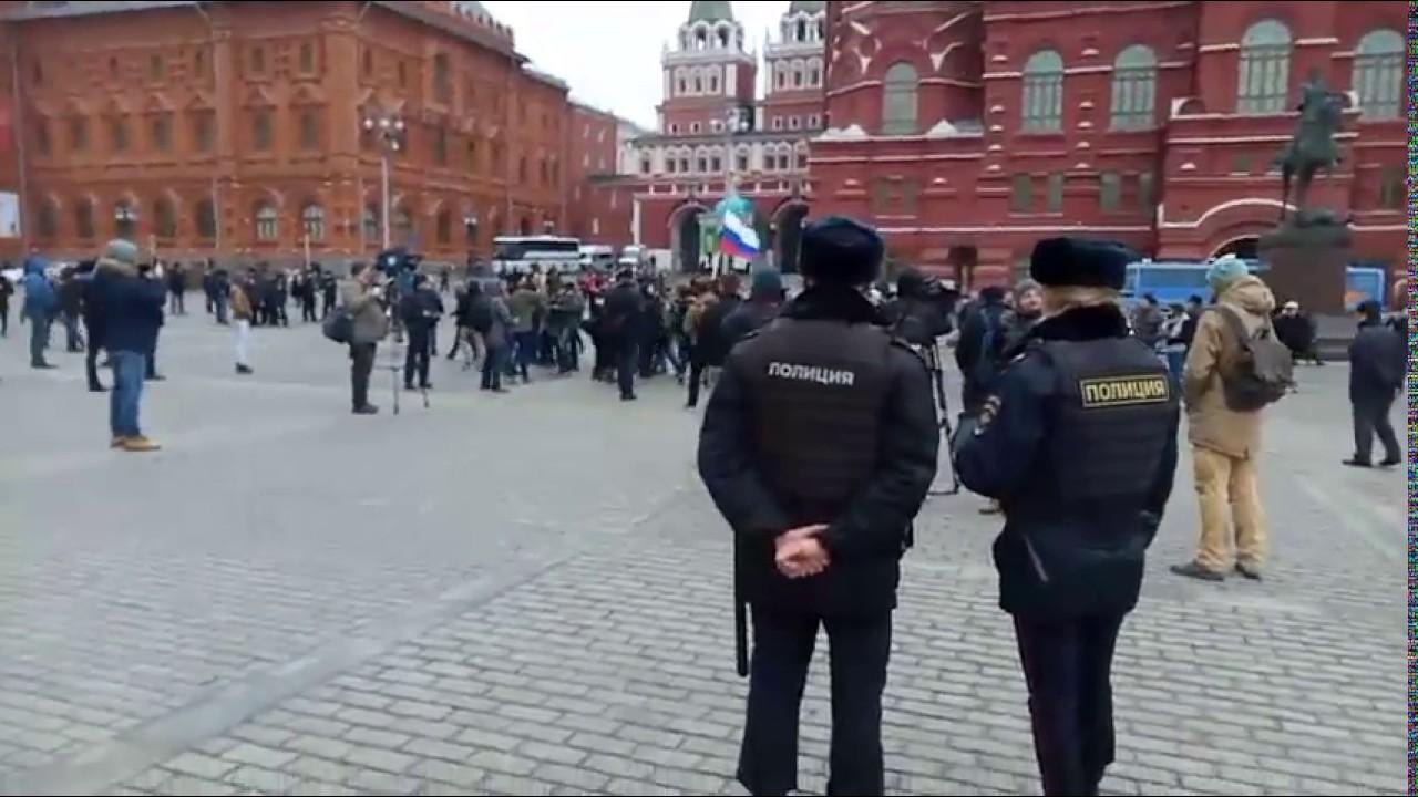 В Москве на Манежной площади 11-классник на спор ударил полицейского ногой. Парня и его друзей задержали.