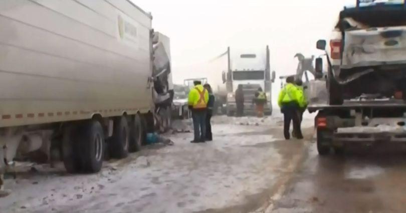 На Трансканадском шоссе столкнулись 12 легковых автомобилей и три фуры, сообщает Час Пик со ссылкой на зарубежные СМИ.