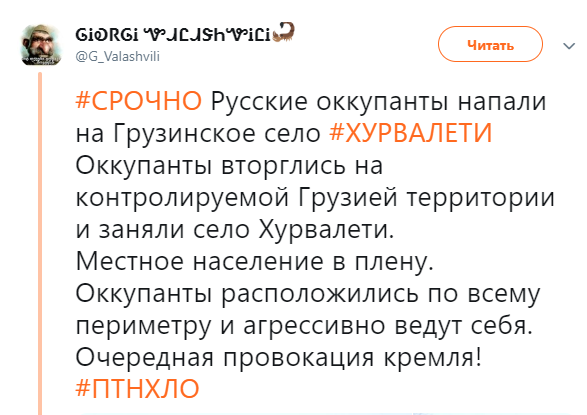 В то же время активисты сообщили, что российские военные покинули Хурвалети. На месте провокации дежурит несколько сотен граждан.