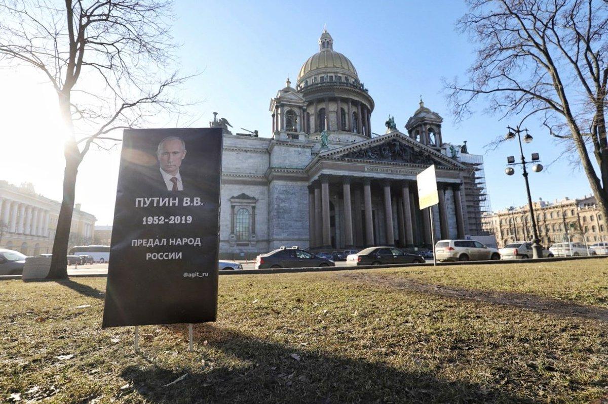 В Санкт-Петербурге россияне поставили "надгробие" своему президенту Владимиру Путину.