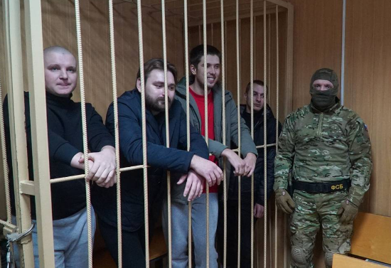 Сообщается, что когда украинцев заводили в зал суда, собравшиеся журналисты, адвокаты и родные моряков встречали их аплодисментами.
