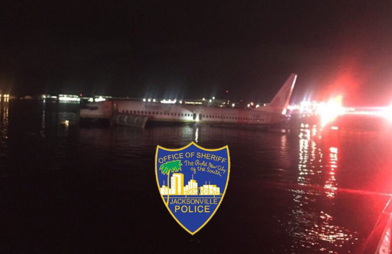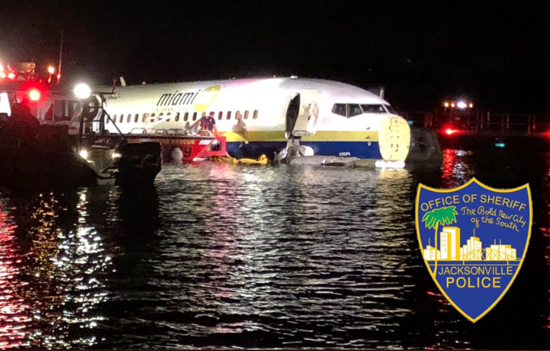 В американском штате Флорида случилась авария с пассажирским самолетом Boeing 737. После посадки воздушное судно съехало в реку.