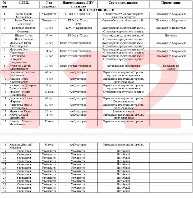 В списке, который опубликовал Телеграм-канал "112", значится 18 пострадавших, передает Час Пик.