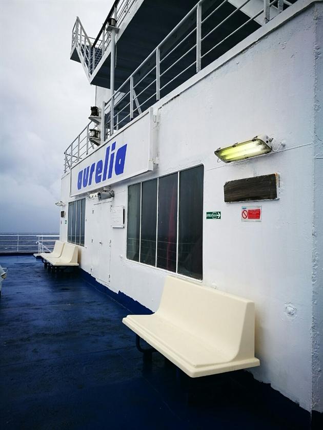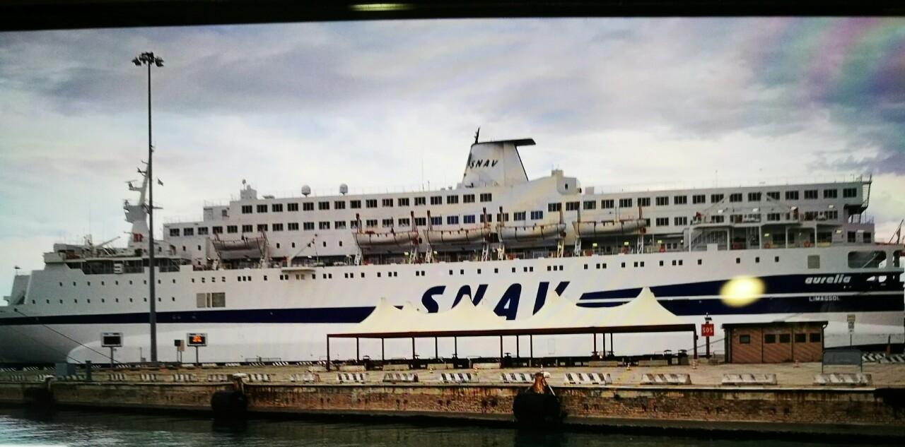 "Аурелия" была построена в 1980 году, ее длина почти 137 метров. Владелец - итальянская компания "SNAV", которая плавает под кипрским флагом.