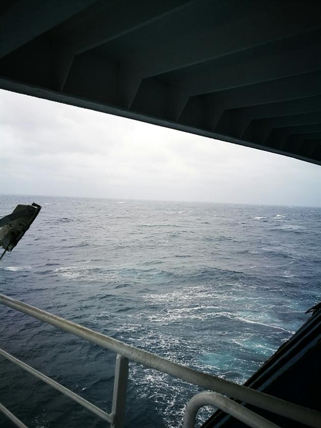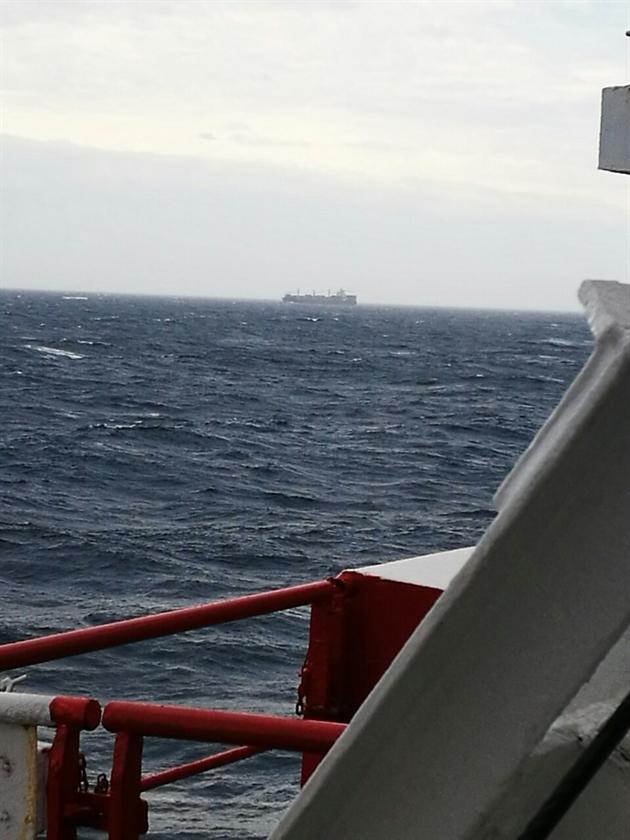 Рядом с "Аурелией" находится коммерческий корабль "Майра", который защищает судно от волн.