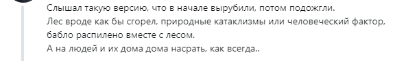 В соцсетях очевидцы делятся кадрами мощного пожара. Тем временем местные жители высказывают версию, что лес умышленно подожгли, чтобы скрыть незаконную вырубку.