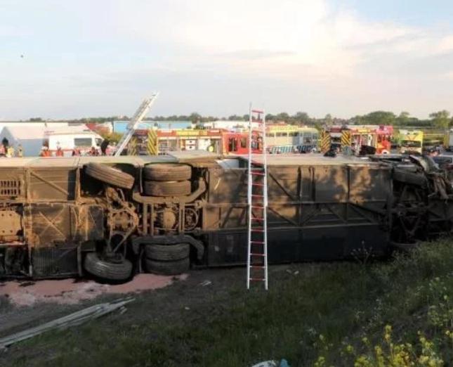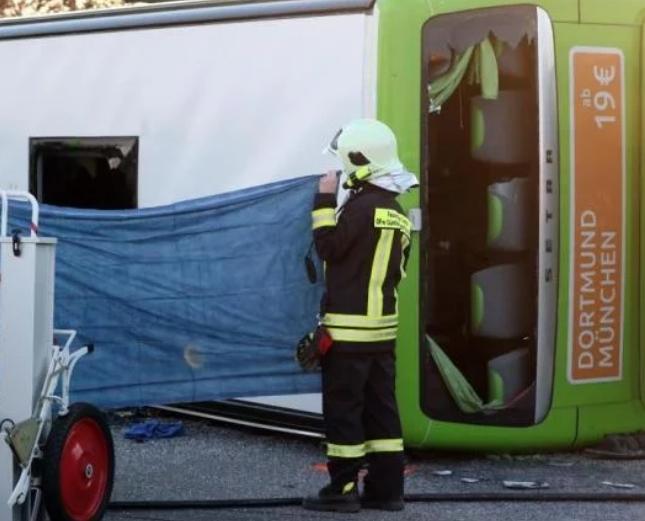 В Германии на автобане A9 под городом Лейпциг перевернулся автобус "Flixbus". По меньшей мере один человек погиб, более 70 пострадали, из них 7 получили тяжелые ранения.