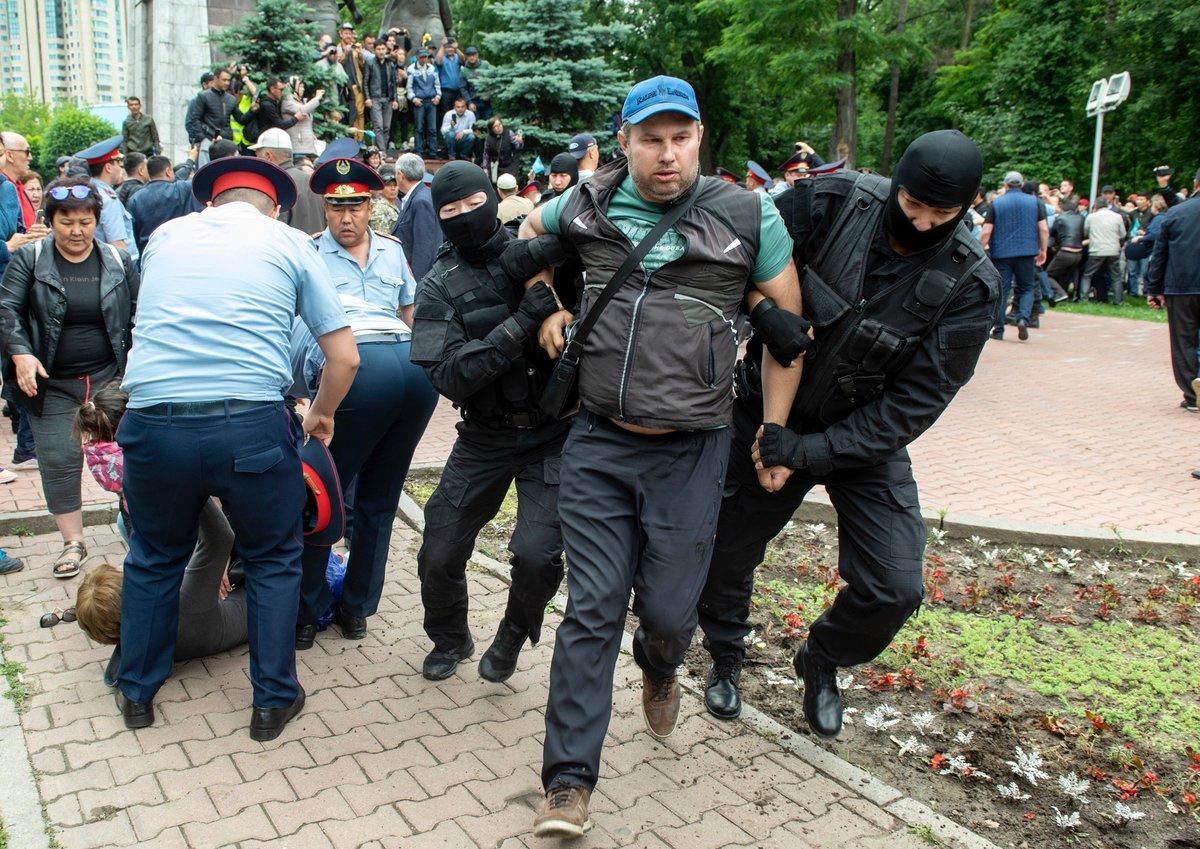 Сотрудники правоохранительных органов Казахстана задержали в городе Алма-Ата более 100 участников акции протеста, которая состоялась сегодня, 9 июня, в связи с выборами президента страны.
